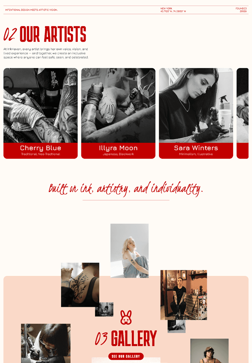 Ink Haven came to the table with a clear identity — female-founded, artistry-first, deeply community-driven — and needed a brand and digital presence that could hold all of that without watering it down. The challenge wasn't inventing a personality. It was building a visual language worthy of one that already existed.