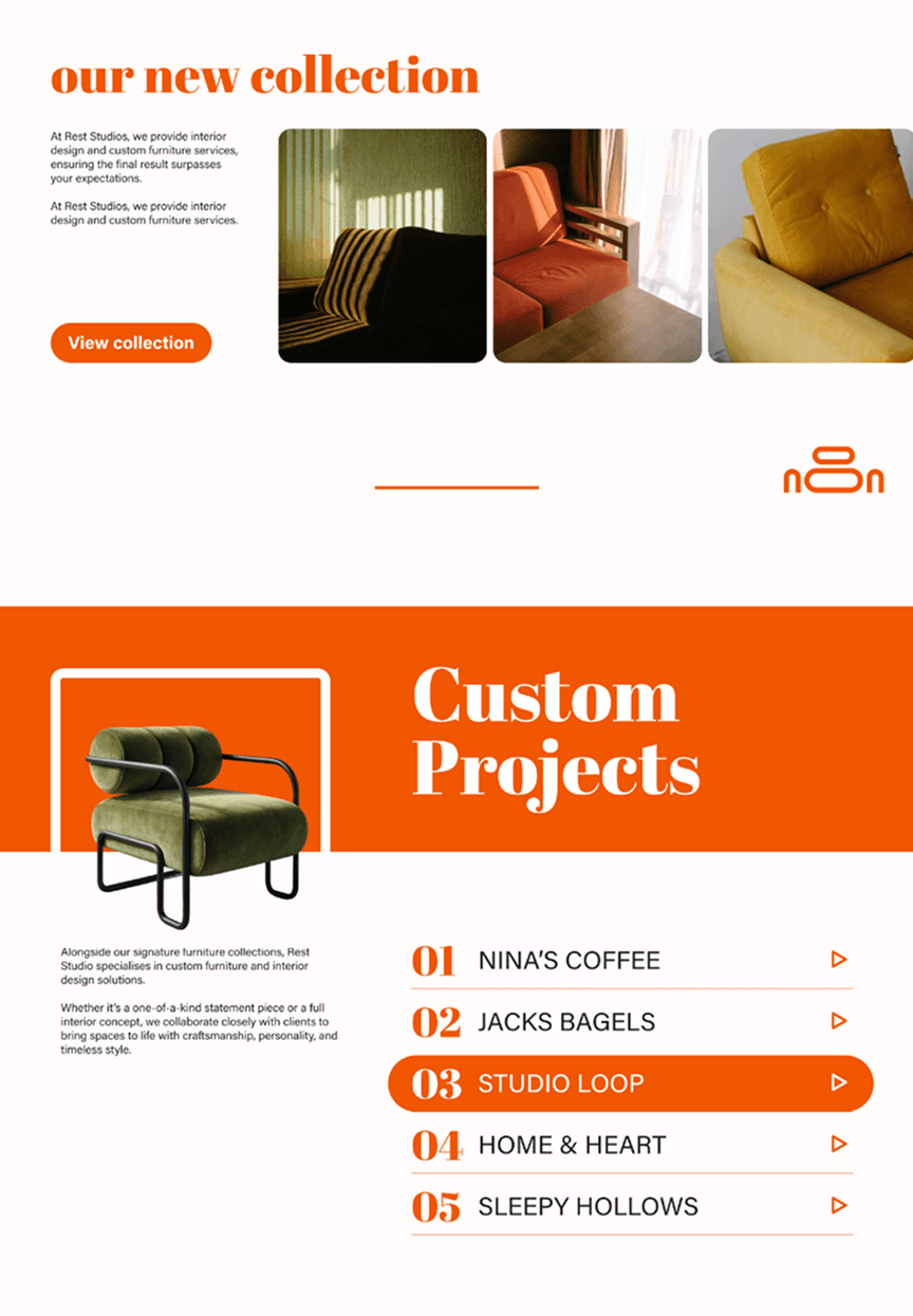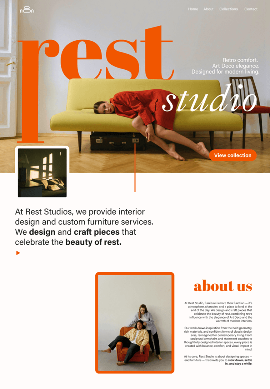 Rest Studio designs retro-inspired furniture and interiors rooted in the elegance of Art Deco design. From sculptural armchairs to custom-built couches and curated interior spaces, each piece is crafted to bring character, comfort, and timeless style into modern homes.